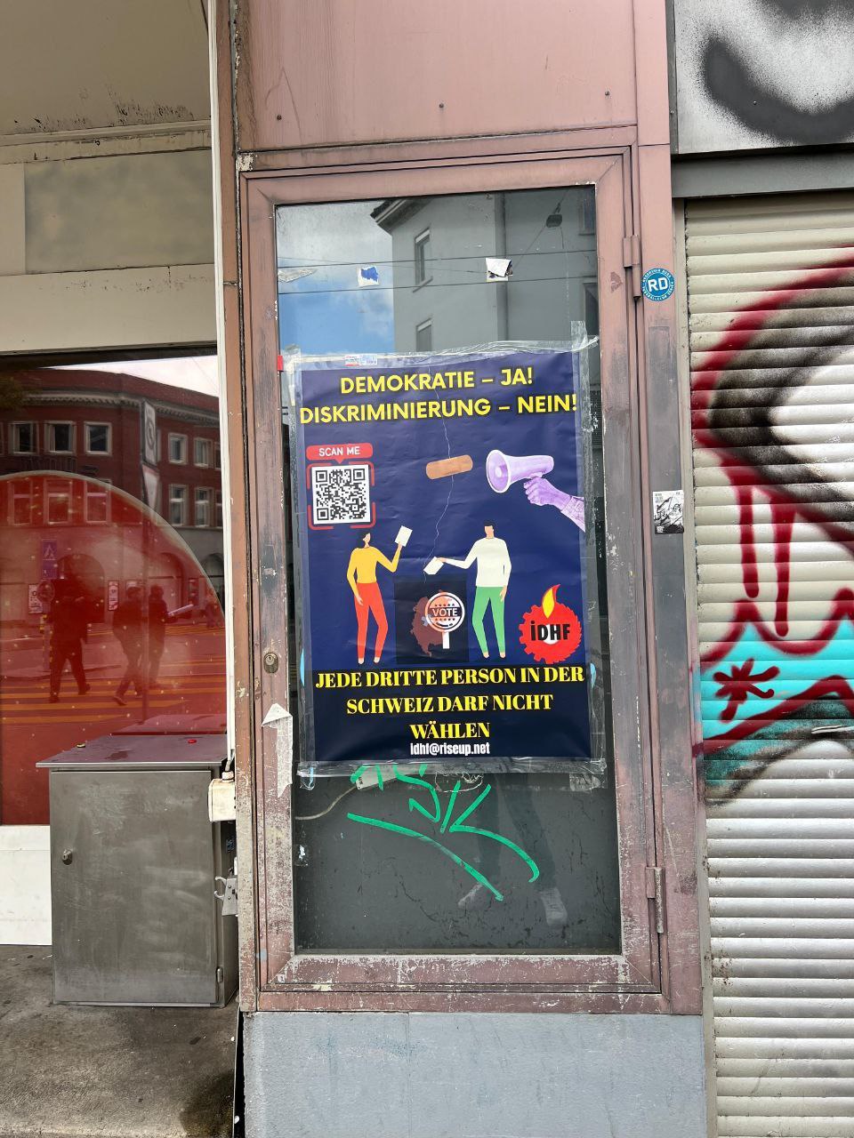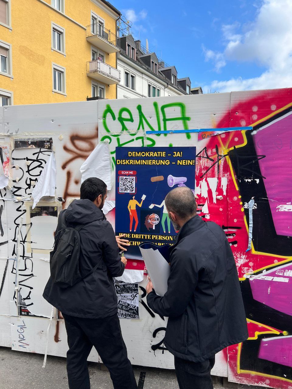 Geçtiğimiz hafta Zürih merkezde gerçekleştirilen afişleme çalışmasının ardından, bu kez Winterthur’da da sokaklar “Count Me In” kampanyasının renkleriyle donatıldı. Kampanya gönüllüleri, kent merkezinde çeşitli noktalara afişler asarak İsviçre’de yaşayan göçmenlerin sesini duyurmayı amaçladı.
